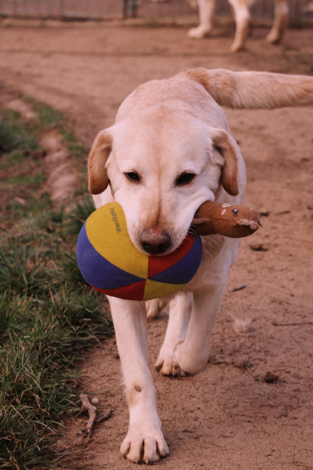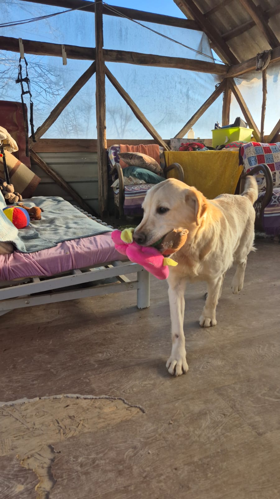 În prezent, împarte țarcul cu alți patru câini și se integrează firesc în grup.